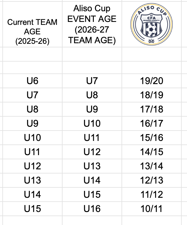 We are playing with the new Age Breakdowns - but using the ages from 2025/2026 - as that is how Got Sport is set up prior to June. It can be a little confusing - feel free to reach out and discuss before registration.